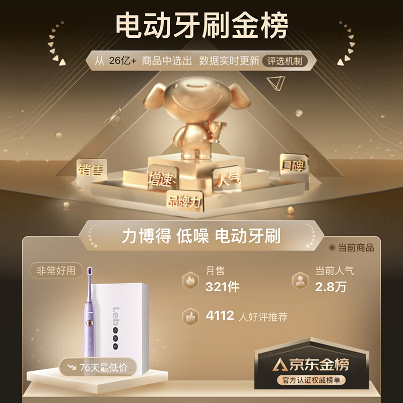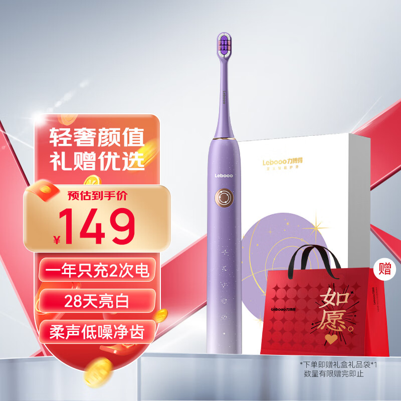 力博得(Lebooo)电动牙刷智能声波高频低噪 成人情侣款生日节日礼物送男友/女友 星空礼盒 星芒PRO 暮晨紫价格:149.00元!