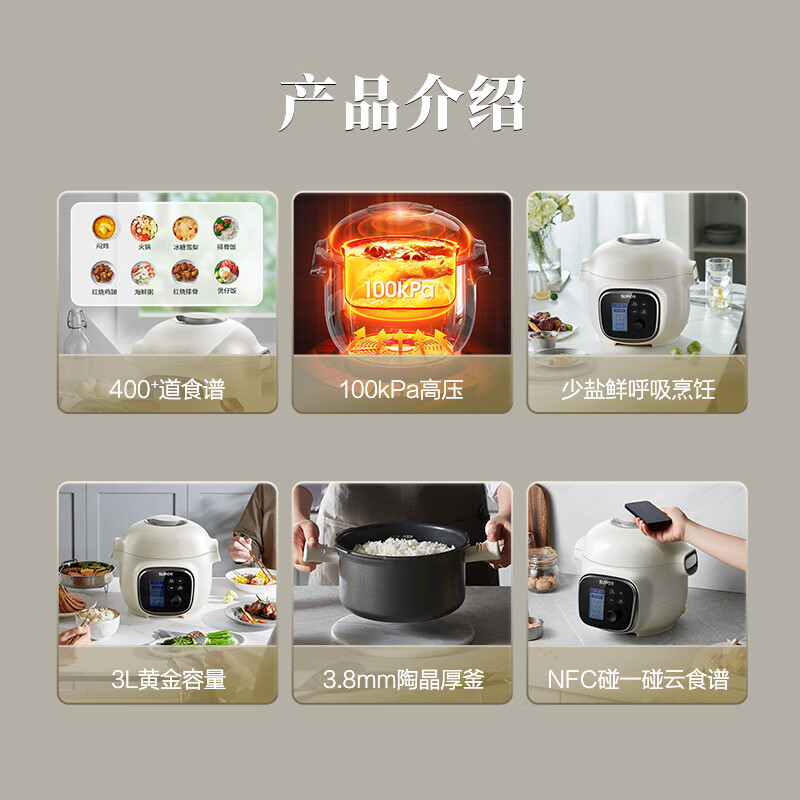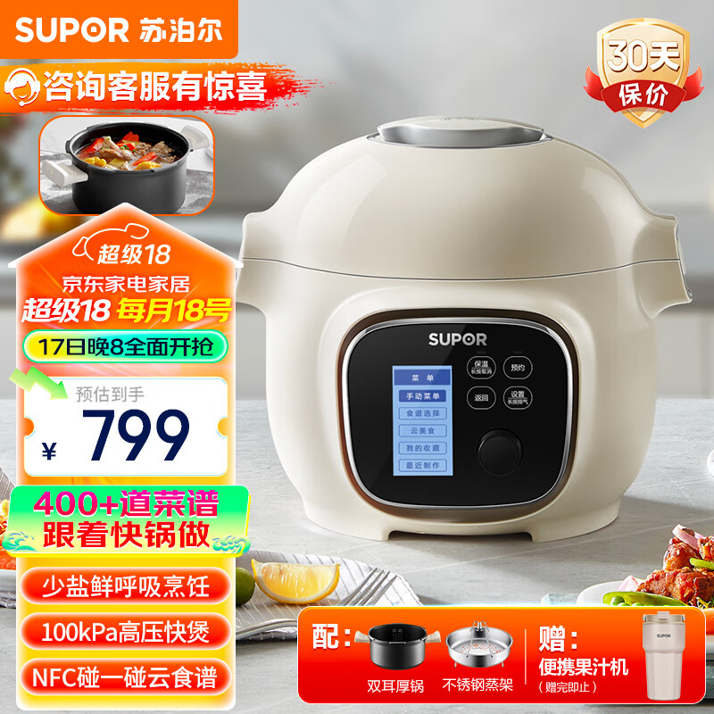 苏泊尔(SUPOR)电锅智能家用多功能自动排气高压锅电饭煲不沾可预约料理快锅电饭锅3L容量SY-30YZ100 3L价格:799.00元!