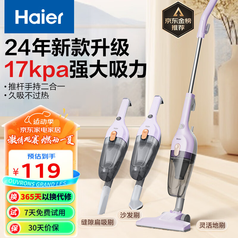 海尔吸尘器家用 有线手持推杆二合一 大功率大吸力 轻量车辆清洁 宠物毛发清洁 HZ-L8P1价格:119.00元!