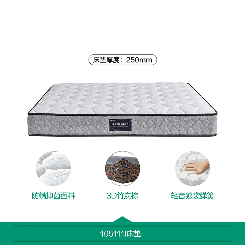 全友家居加厚进口乳胶床垫独立袋装弹簧席梦思护脊环保椰棕床垫105111价格:2427.14元!
