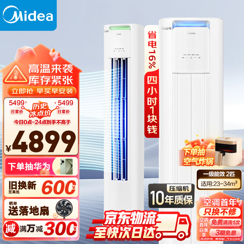 美的(Midea)空调 2匹 酷省电 新一级能效 变频冷暖 空调立式 客厅空调柜机 云朵系列 KFR-51LW/N8KS1-1P价格:4899.00元!