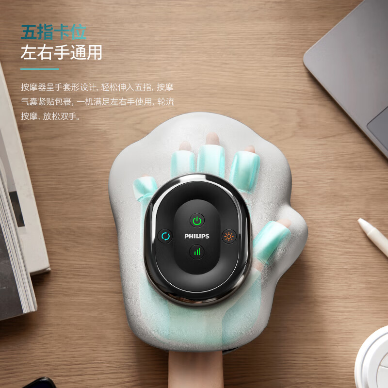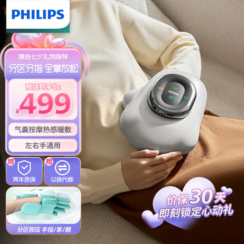 飞利浦(PHILIPS)手部按摩器 手指手掌按摩仪揉捏热敷肌肉放松器分区分指全掌手腕手关节热敷按摩七夕送礼3101A价格:539.00元!