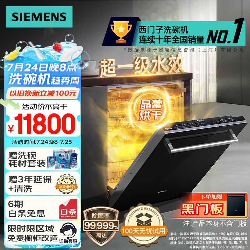 西门子全能舱全嵌入式16套晶蕾烘干除菌存储 晶蕾96小时储存 触控式SJ65ZX00MC(带黑玻璃门板)价格:10500.00元!