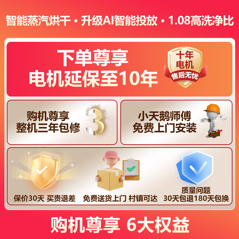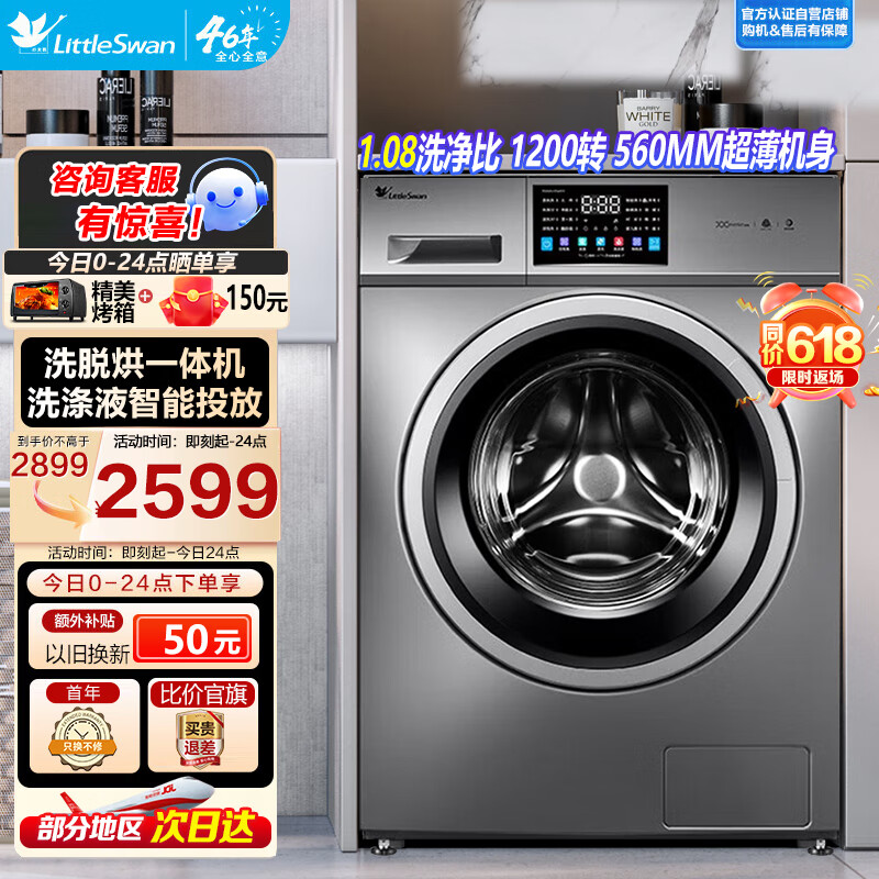 小天鹅(LittleSwan)洗烘一体洗衣机全自动 除菌除螨洗 智能投放 10公斤变频家电家用大容量 以旧换新 TD100V23WIDY价格:2599.00元!
