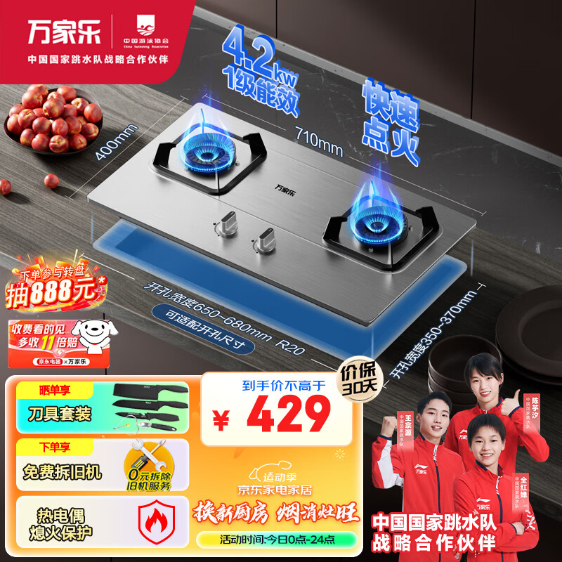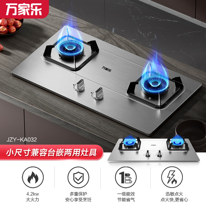 万家乐燃气灶 4.2kW大火力不锈钢煤气灶 台嵌两用双灶猛火灶 一级能效 家用燃气灶具JZY-KA032液化气价格:529.00元!