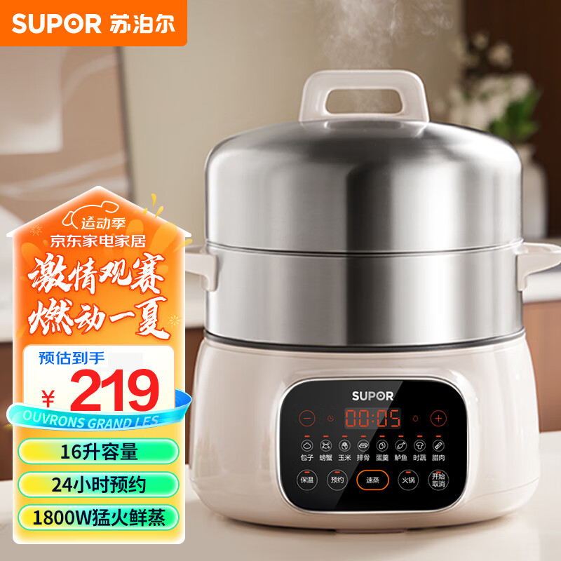 苏泊尔(SUPOR)电蒸锅 电煮锅 电火锅 家用多功能蒸煮电热锅 16升大容量一体蒸锅 智能不粘多用途锅ZN28YC907价格:219.00元!