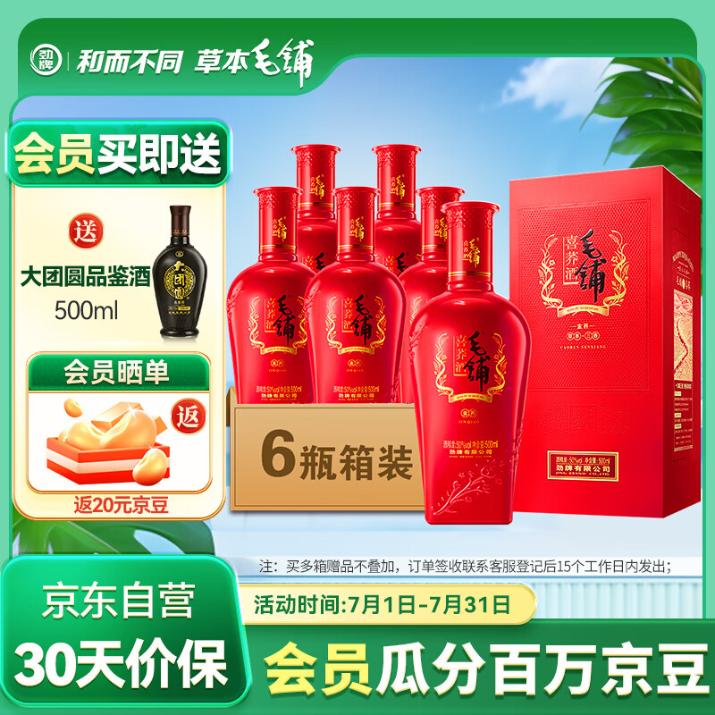 劲牌 毛铺苦荞酒 喜荞酒金荞 50度 500ml*6瓶 整箱装价格:548.00元!