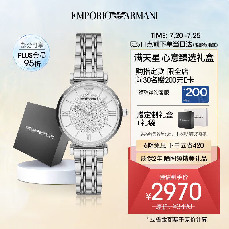 安普里奥·阿玛尼(Emporio Armani)手表女士 满天星系列钢带石英镶钻女士腕表 送女友生日礼物AR1925价格:3270.00元!