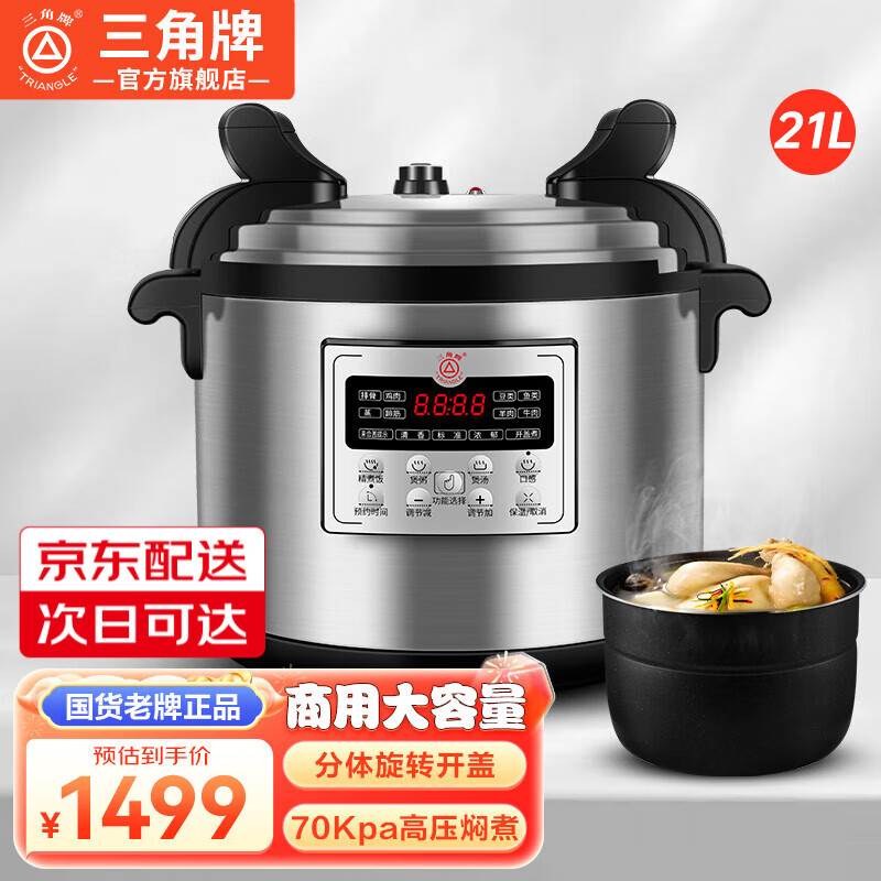 三角牌(Triangle) 商用电锅 大容量电高压锅 特大号大电饭煲/酒店/饭店/食堂/煮饭煲汤炖肉多用途汤锅饭锅 适合30-42人丨 21L价格:1649.00元!