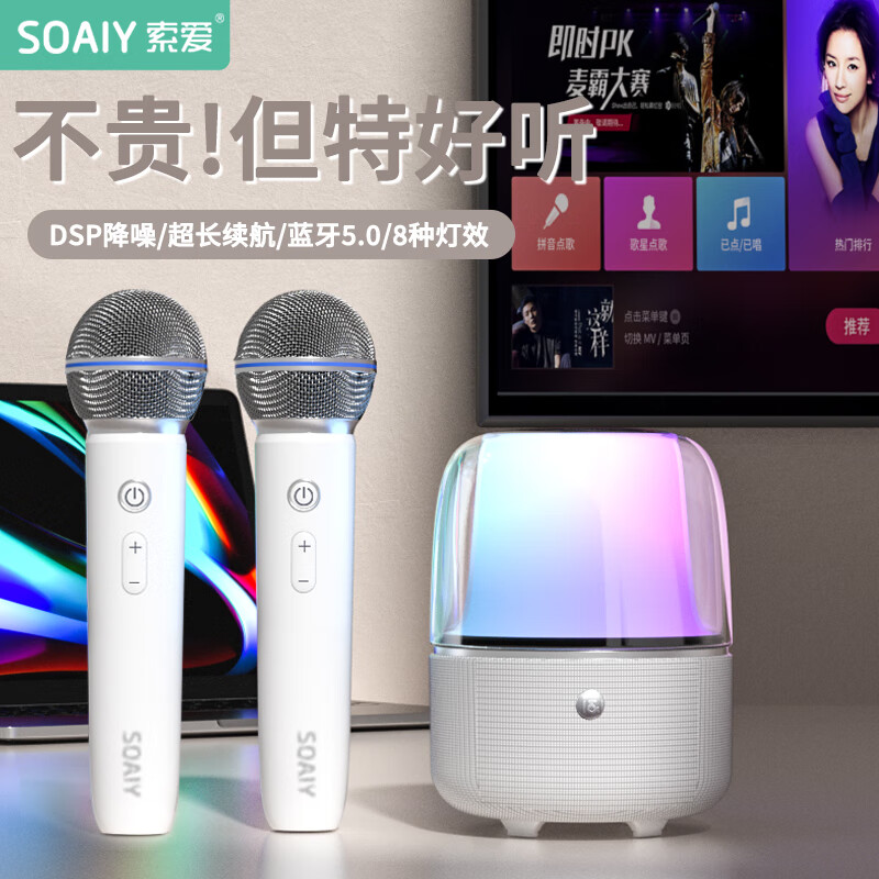 索爱SH77智能双麦版 无线蓝牙音箱户外大音量广场舞音响手提便携式带麦克风话筒k歌家庭KTV 白色价格:199.00元!