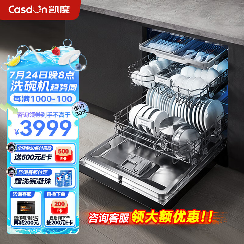 凯度(CASDON)嵌入式 全自动家用烘干独立式 一级水效 智能16套洗碗机 KD3DJR-16J3价格:4399.00元!