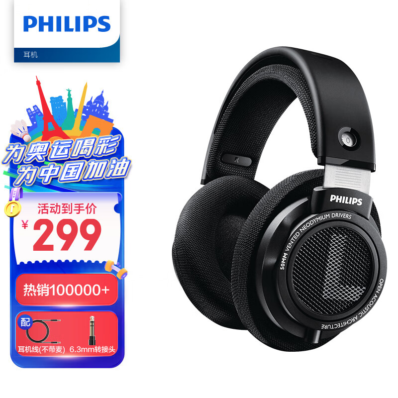 飞利浦(PHILIPS)头戴式耳机有线耳机hifi舒适耳机监听耳机电竞游戏耳机SHP9500价格:299.00元!