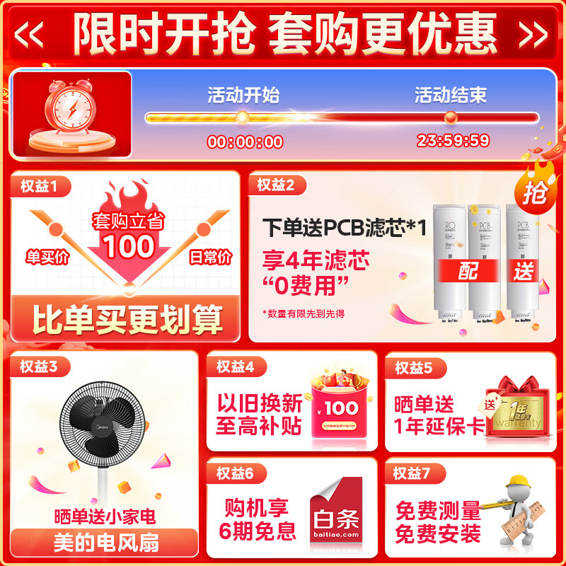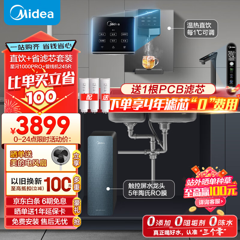 美的(Midea)直饮加热净水器套装【星河1000pro+管线机MG245-R壁挂式】厨下RO反渗透 家用直饮即热一体净饮水机价格:3899.00元!