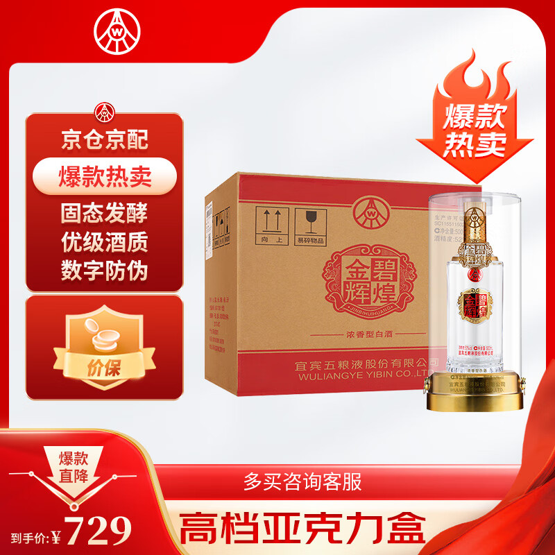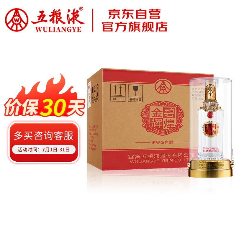 五粮液股份 金碧辉煌 浓香型白酒 52度 500ml*6瓶 整箱装 中秋送礼宴饮价格:729.00元!