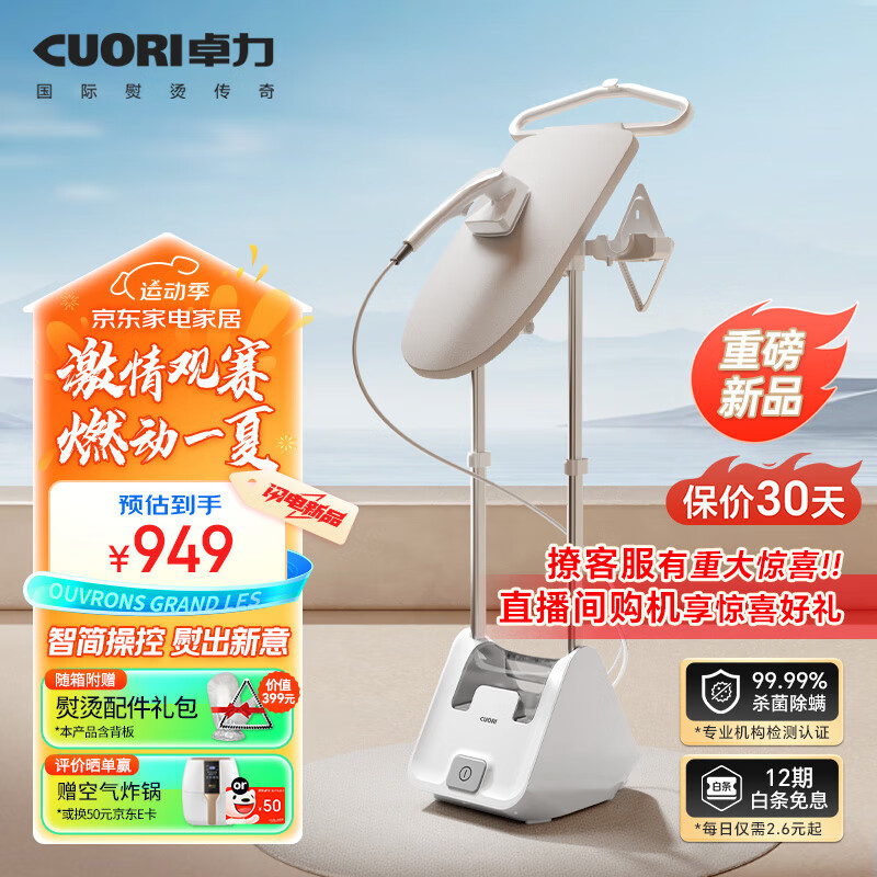卓力(CuoRi)蒸汽挂烫机家用增压双重加热熨烫机双杆立式平挂烫熨斗G2价格:1069.00元!