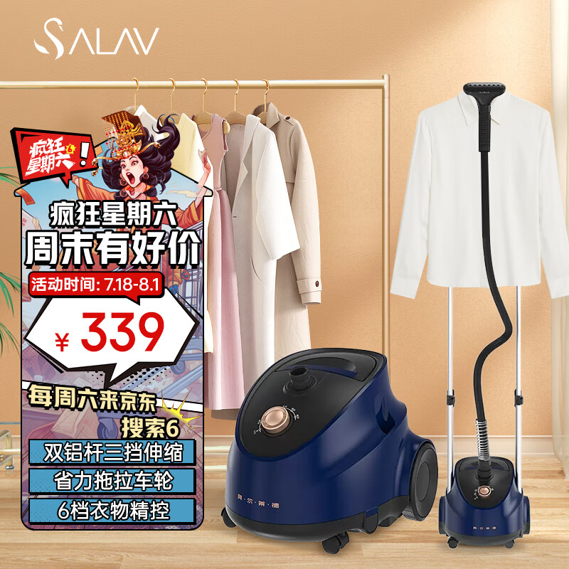 贝尔莱德(SALAV)挂烫机家用小型蒸汽熨斗挂烫双杆六档滚轮熨烫机D11(青)价格:339.00元!