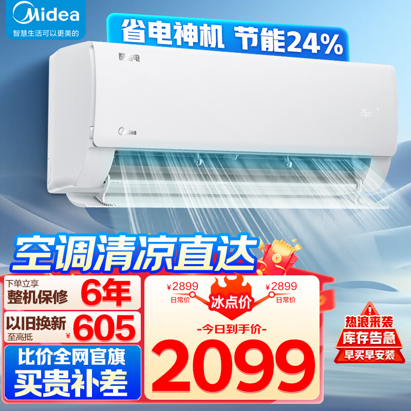美的(Midea)空调 大1匹 酷省电新一级能效变频冷暖自清洁家用壁挂式空调挂机智能家电 KFR-26GW/N8KS1-1价格:2099.00元!