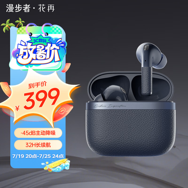 漫步者花再Evo Pro 真无线蓝牙耳机 45db主动降噪 金标认证 通话降噪适用苹果安卓入耳式耳机 秘夜蓝价格:399.00元!