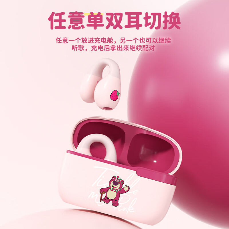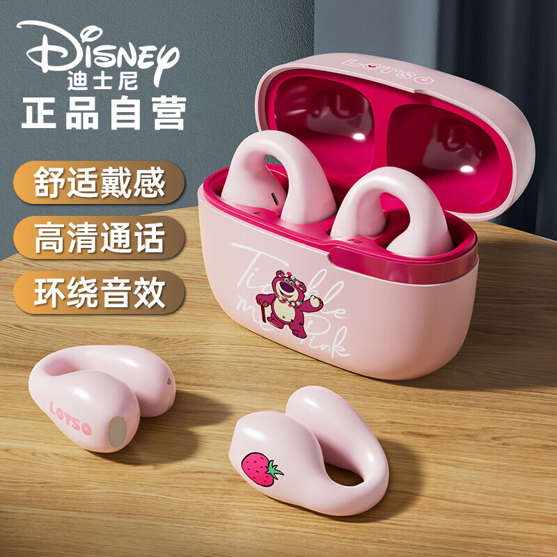 迪士尼(DISNEY)真无线夹耳式蓝牙耳机骨传导概念开放式挂耳运动降噪游戏 超长续航强音质QST10【粉色草莓熊】价格:109.00元!