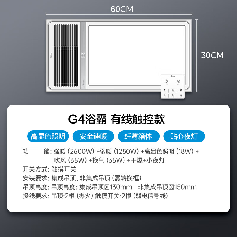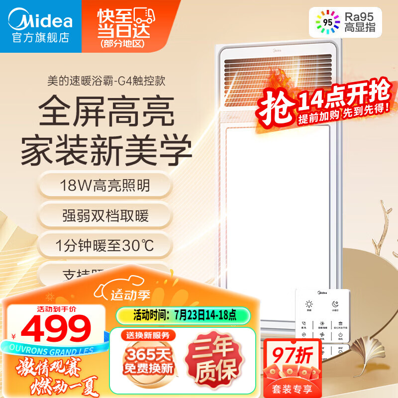 美的(Midea)浴霸风暖照明排气一体强暖大功率智能超薄暖风机卫生间浴室触摸价格:499.00元!
