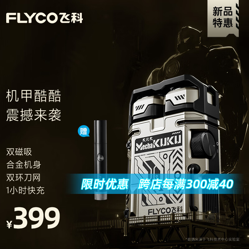 飞科(FLYCO)机甲酷酷男士电动刮胡剃须刀小巧便携迷你生日七夕情人节日礼物送男友送老公送父亲F001-炫酷黄价格:499.00元!