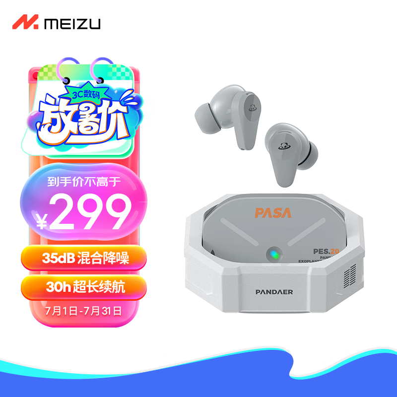 魅族(MEIZU)PANDAER PASA 降噪耳机 35dB混合降噪 30h超长续航 电竞低延迟模式 HiFi高保真音质 SX12价格:299.00元!