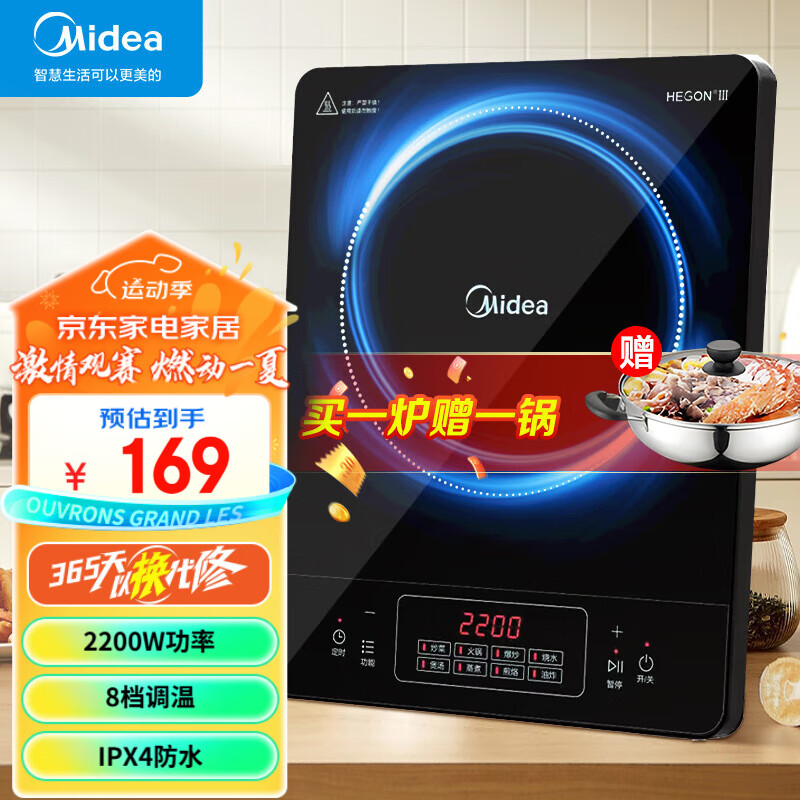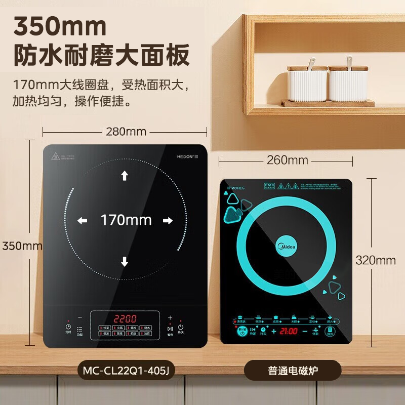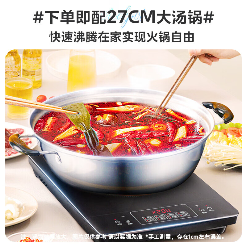 美的(Midea) 电磁炉大功率家用 防水面板2200W大功率 炒菜火锅不粘炒锅一体小型电磁灶 【标配配汤锅款】CL22Q1-405 电磁炉价格:209.00元!