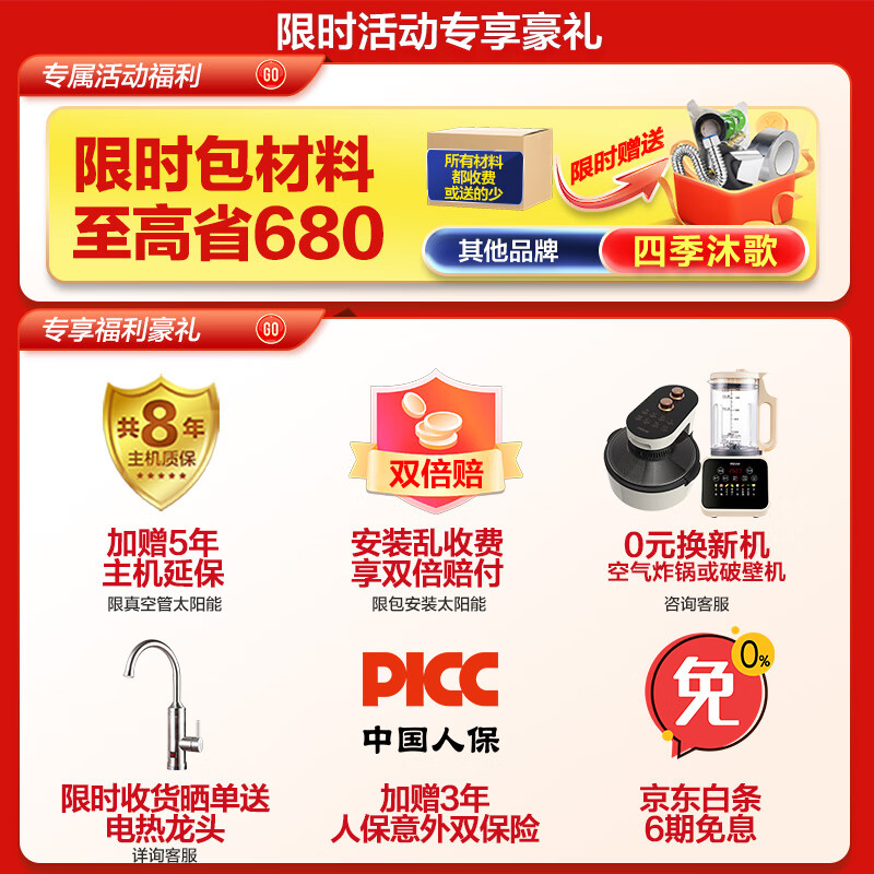四季沐歌太阳能热水器配置参数: