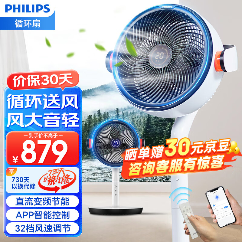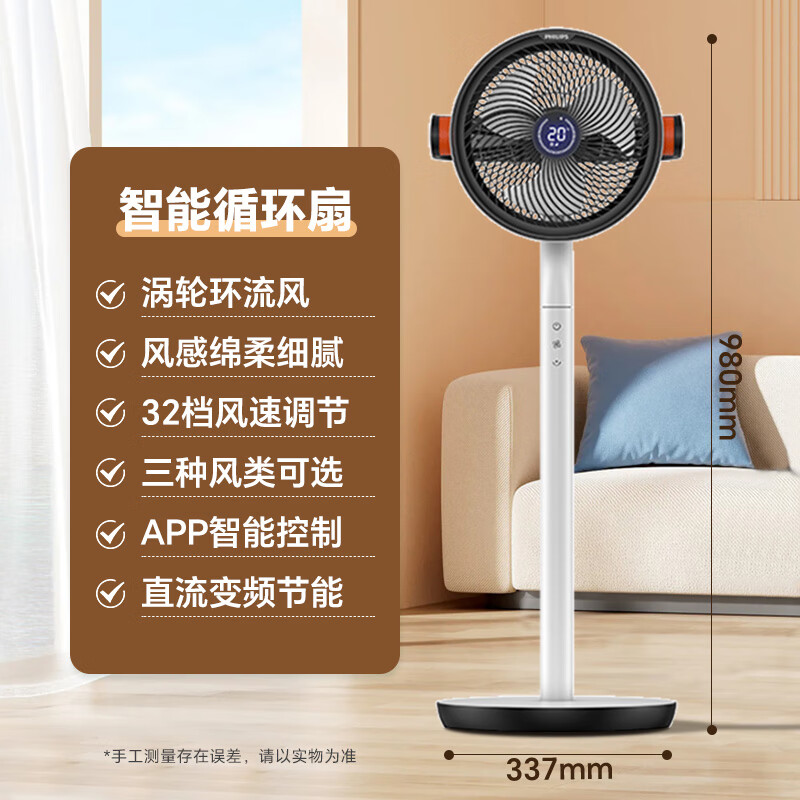 飞利浦(PHILIPS)空气循环扇家用电风扇智能遥控落地扇轻音节能台扇直流变频摇头电扇台地两用桌面换气扇ACR4144CF价格:1079.00元!