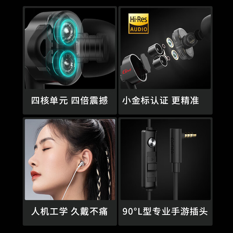 漫步者(EDIFIER)HECATE GM380耳机 入耳式双动圈四核K歌音乐耳麦 电脑手机线控带麦电竞游戏吃鸡耳塞 白色价格:129.00元!