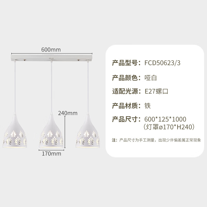 FSL佛山照明LED吊灯餐厅灯具三头吸顶餐吊灯饰创意吧台灯长条50623价格:239.00元!