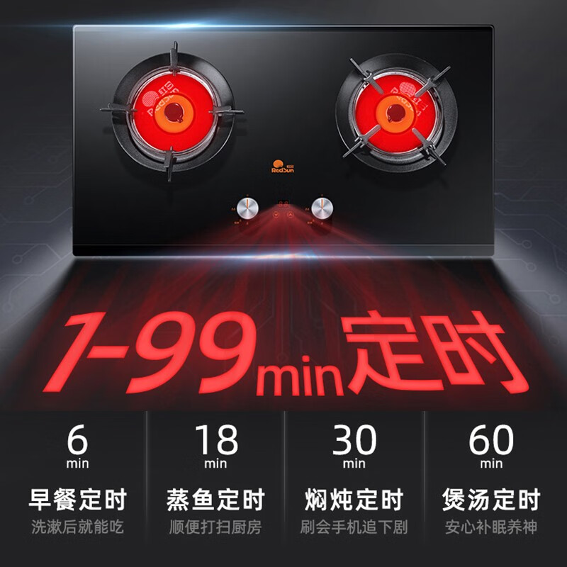 红日(RedSun)红外线燃气灶 液化气灶 智能触摸定时双电源 一级能效 防爆钢化玻璃 JZY-EM608B(液化气)价格:949.00元!