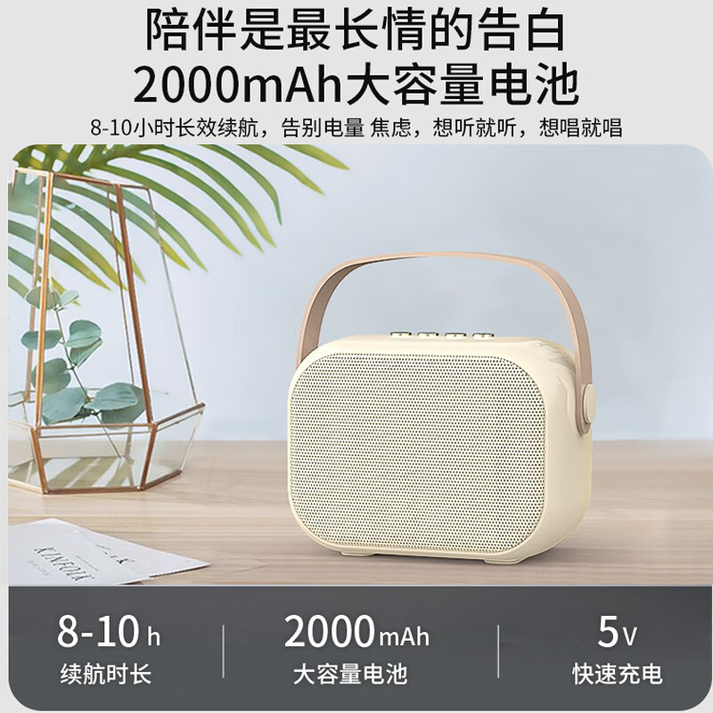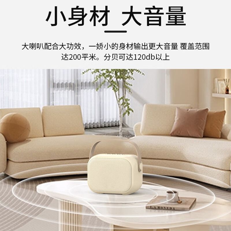 雅兰仕(EARISE)S53无线蓝牙音箱户外大音量迷你音响便携式带麦克风话筒k歌家庭KTV 旗舰款 米白价格:95.40元!