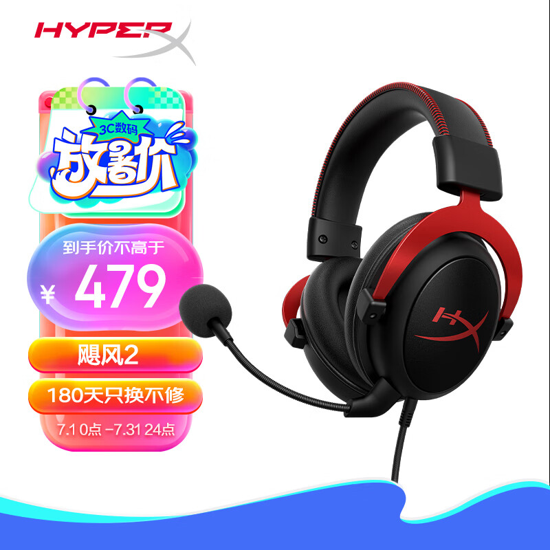 极度未知(HYPERX)Cloud II 飓风2黑红 虚拟7.1声道 飓风2头戴式游戏耳机灵音声卡职业玩家电竞耳机donk有线价格:479.00元!