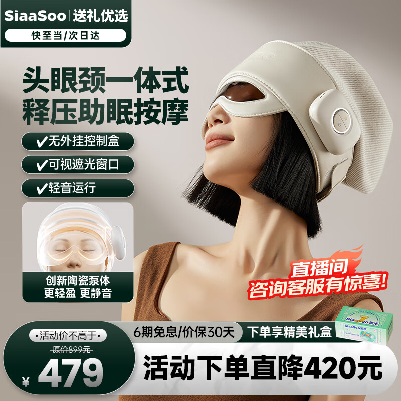 象术(SIAASOO)头部按摩器按摩仪头眼颈一体式睡眠仪睡眠神器热敷眼部眼罩 送父母长辈男女朋友生日节日礼物 【失眠推荐】睡眠按摩仪H1杏仁黄价格:899.00元!