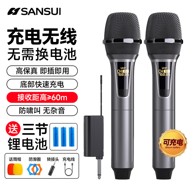 山水(SANSUI)U6可充电锂电池无线麦克风一拖二话筒U段KTV唱歌演讲舞台会议音箱音响功放价格:299.00元!