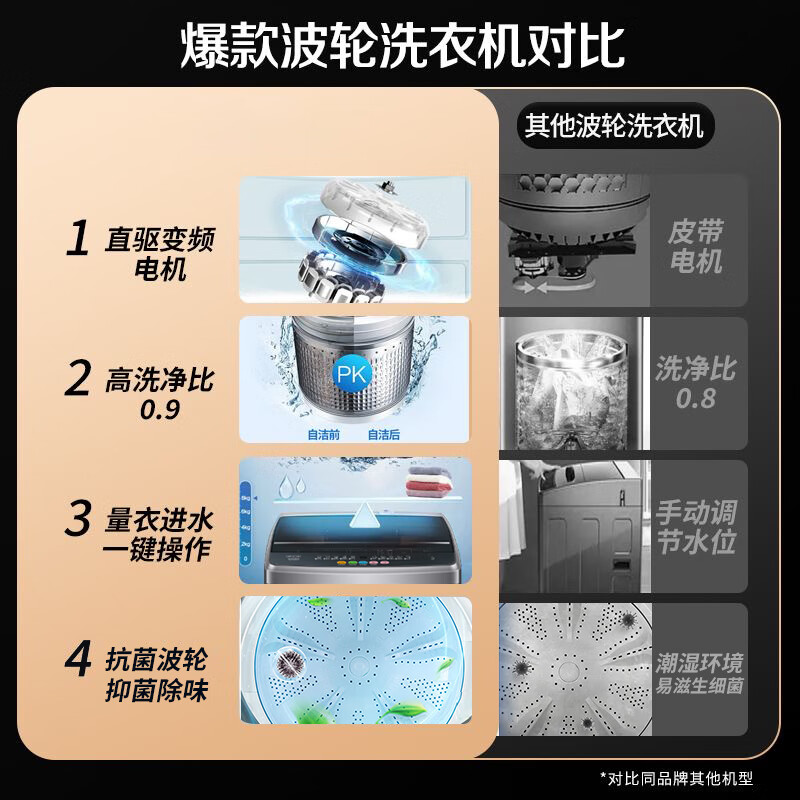 5、外形外观:大小非常适合,色泽可以,跟图片一样好,非常不错?洗净效果:平行均行噪音小,洗出来的衣服干净舒适容量大小:10K9