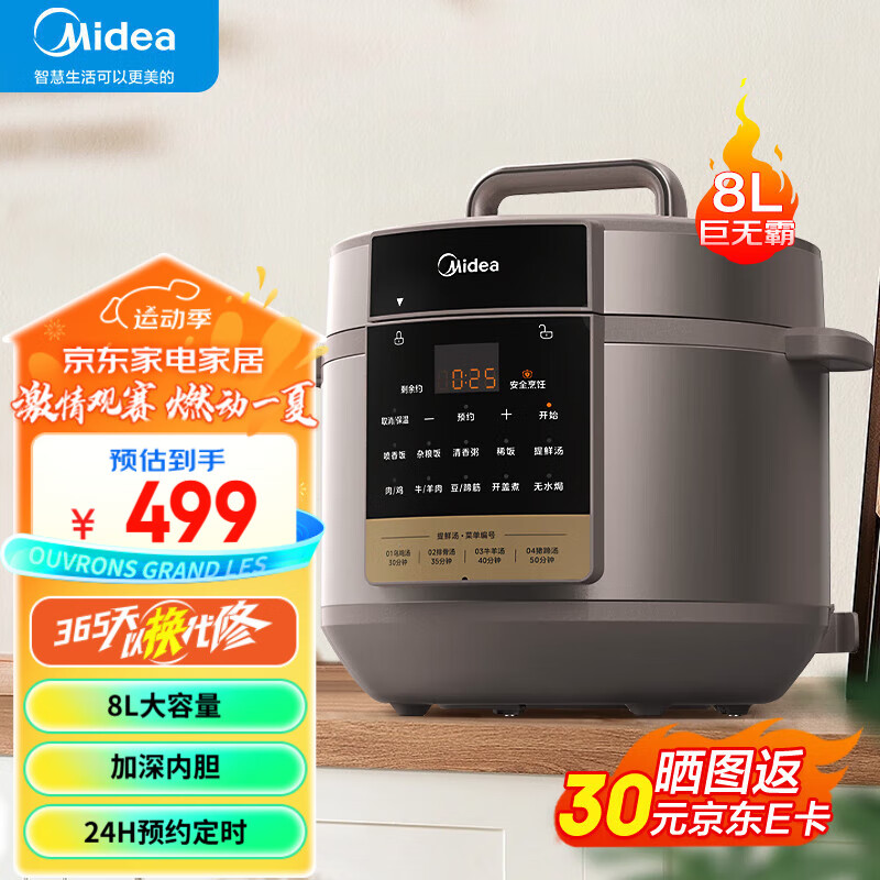 美的电锅 家用商用8L智能高压锅 一键排气 多功能蒸煮焖炖 高压电饭煲 【8L大容量】 雅士金色价格:609.00元!