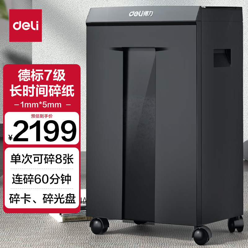 得力7级高保密碎纸机 商务办公大型商用家用长时间 文件粉碎机 可碎卡碎光盘 单次8张 30L 持续60分钟价格:2199.00元!