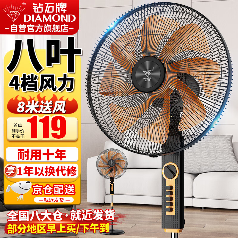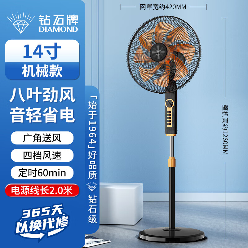 钻石牌(DIAMOND)电风扇家用落地扇办公室立式风扇客厅大风量定时遥控机械摇头风扇 14吋八叶【机械款】FS-35-1价格:149.00元!