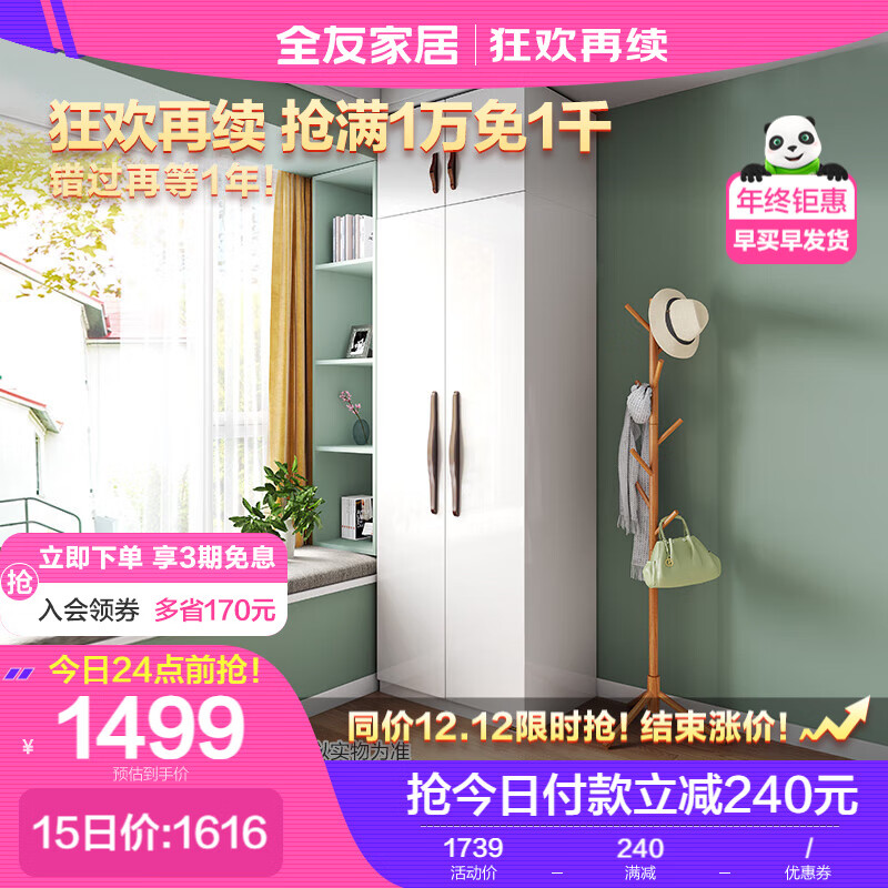 全友家居 衣柜北欧风平开门衣柜半定制灵活组合卧室衣橱121807价格:1739.00元!