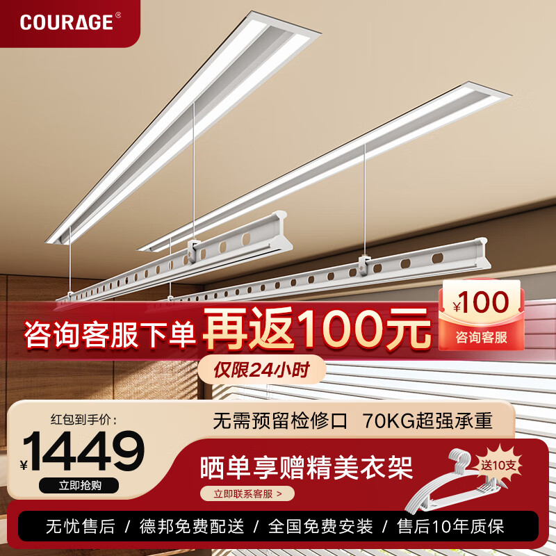 卡瑞琪(COURAGE)电动晾衣架隐形阳台家用隐藏式晾衣架多功能升降晒衣架双杆 2.4米价格:2149.00元!