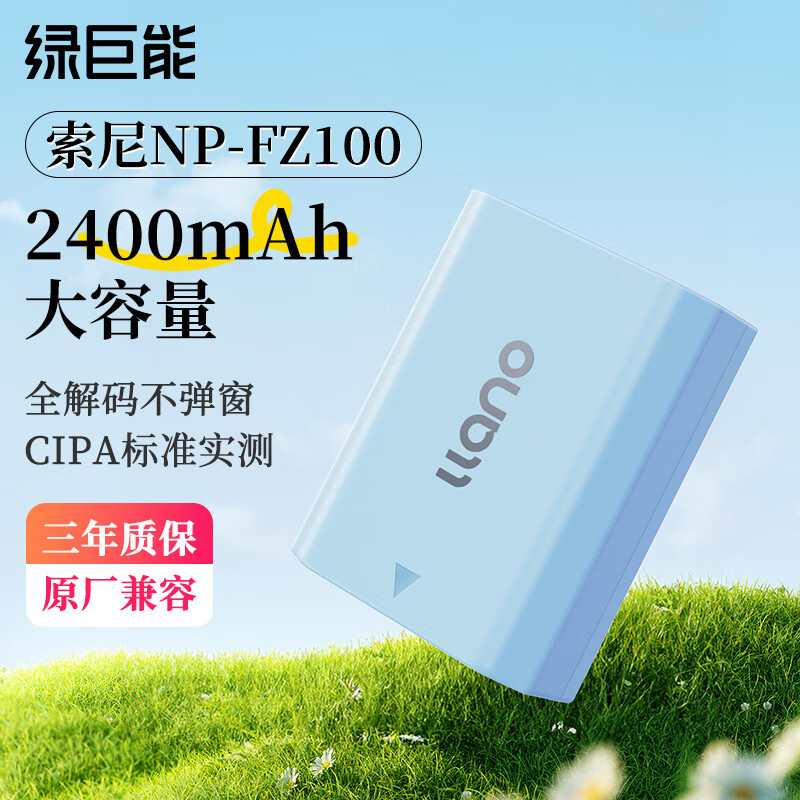 绿巨能(llano)索尼NP-FZ100相机电池a7m4多彩电池a7m3/a7c/a7r3/a7r4/a6600微单相机电池2400mAh晨雾蓝价格:209.00元!