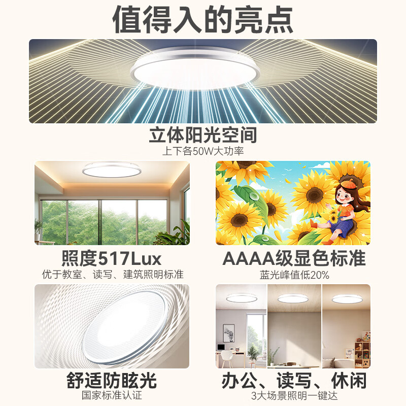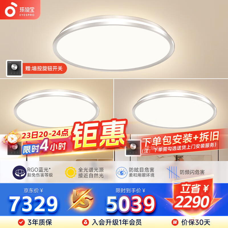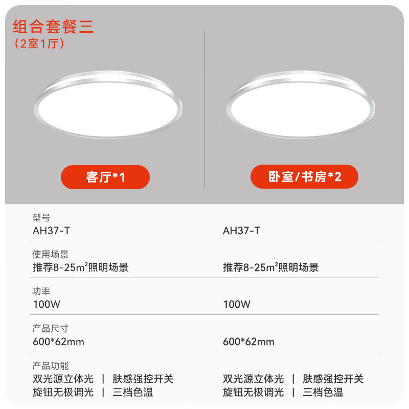 孩视宝【两室一厅套装】全光谱护眼吸顶灯卧室书房客厅灯儿童房灯AH37*3价格:7329.00元!