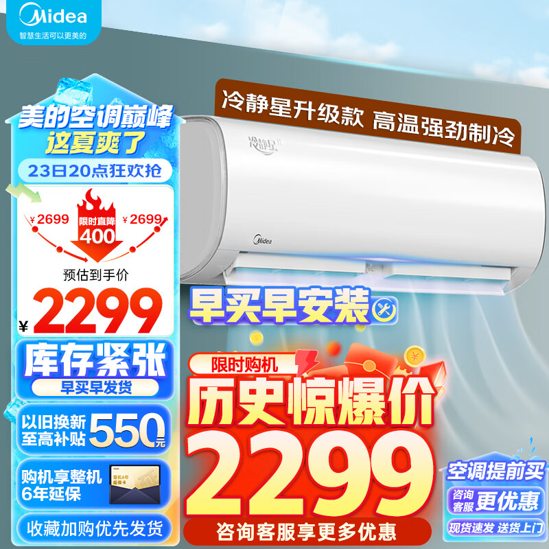 美的(Midea)空调 1.5匹 冷静星二代 新一级能效 变频冷暖 壁挂式空调挂机 智能家电 KFR-35GW/BDN8Y-PH200(1)A价格:2299.00元!