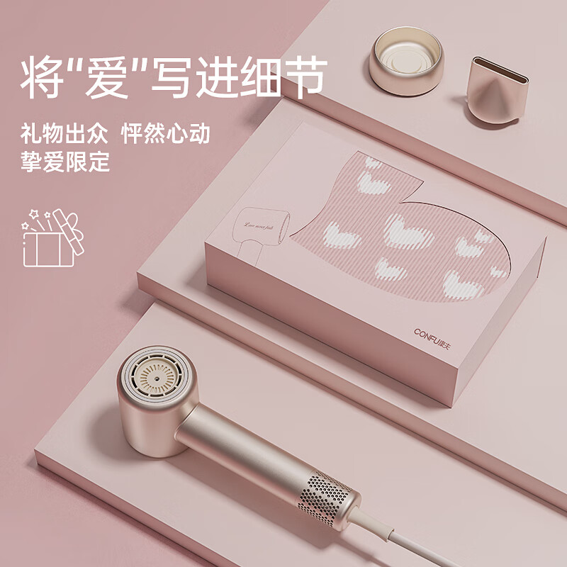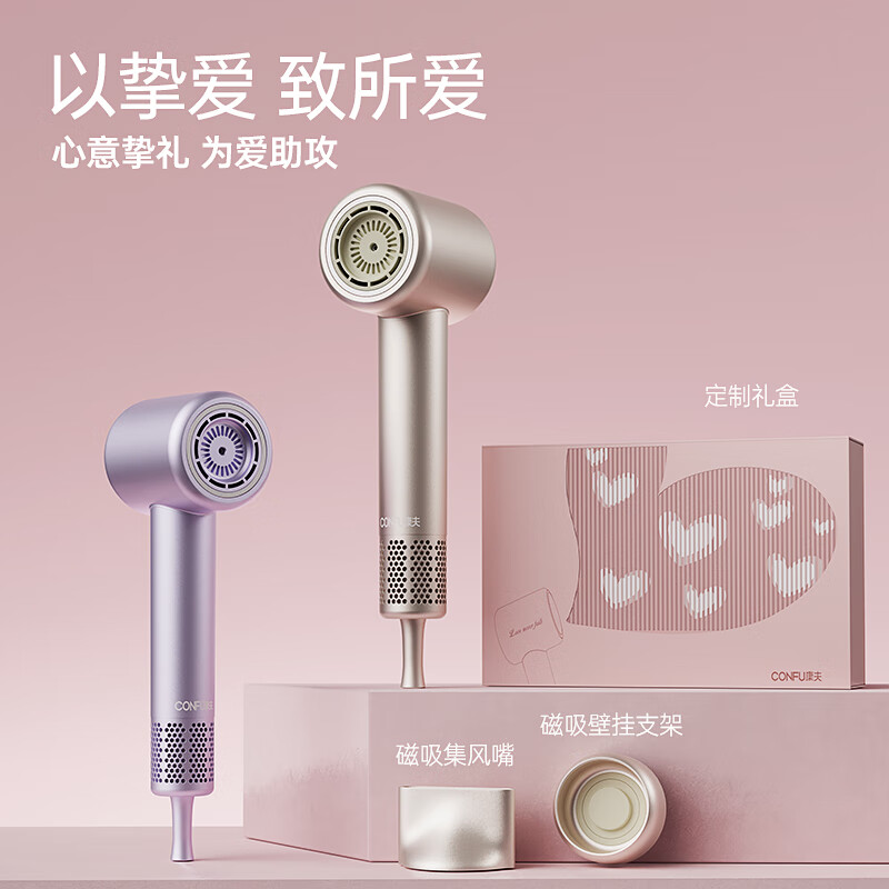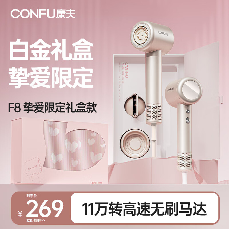 康夫(CONFU)11万转高速电吹风机家用负离子护发送女友生日七夕情人节礼物吹风筒礼盒款 KF-F8扶光金价格:389.00元!