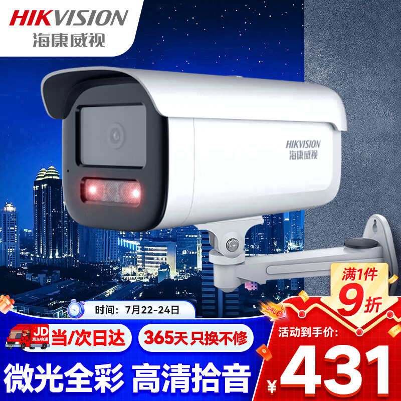 HIKVISION海康威视监控器摄像头400万2K高清星光夜视室内室外摄像机可拾音网线供电手机远程3T46WDV3-I36mm价格:479.00元!