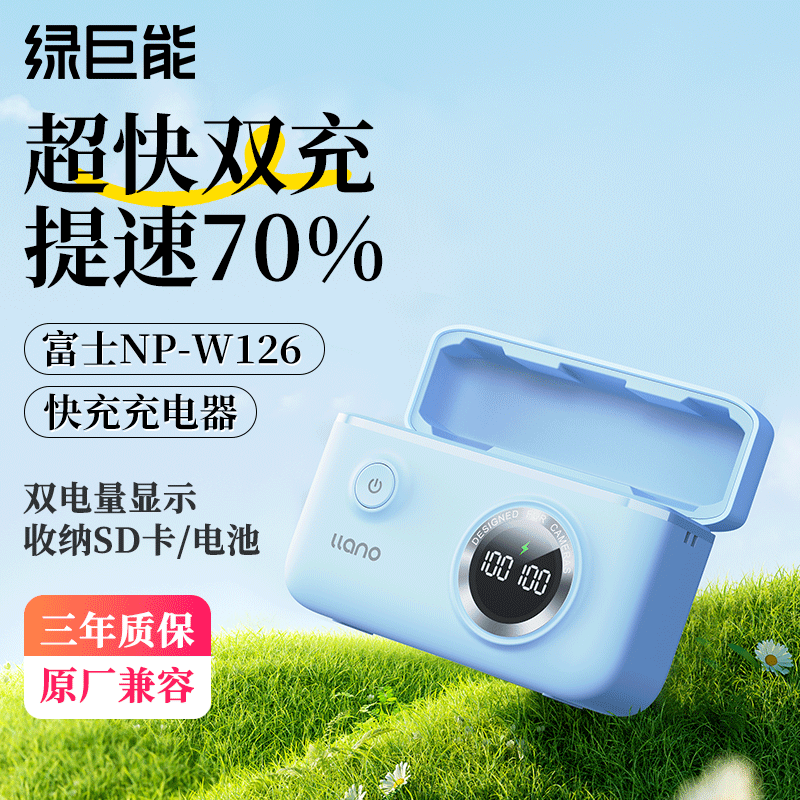 绿巨能(llano)富士NP-W126相机电池XT30电池XS10/XT20/XE4/XT3相机快充可收纳双充充电器晨雾蓝价格:169.00元!