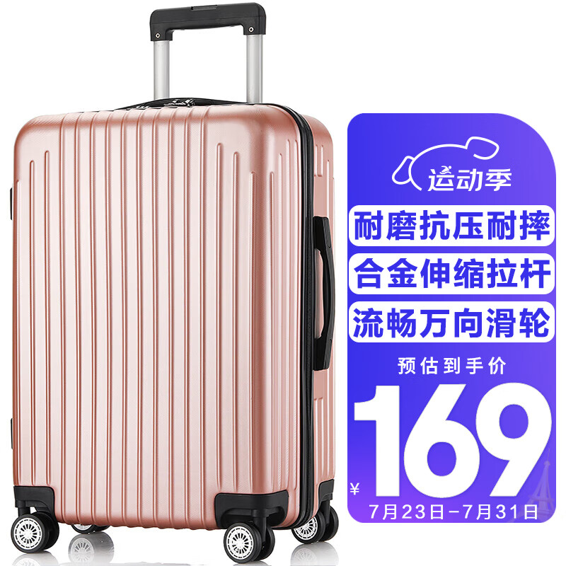 梵地亚行李箱男大容量24英寸万向轮拉杆箱旅行箱包密码箱女皮箱子玫瑰金价格:169.00元!
