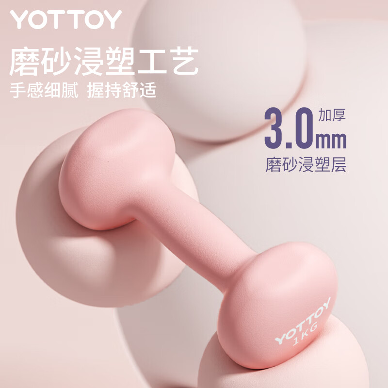 yottoy浸塑哑铃男士女士健身家用肌肉塑形实心小哑铃力量训练器材一对装价格:96.50元!